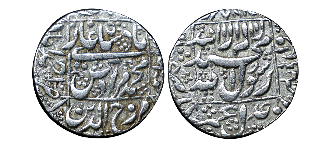 Shah Jahan, Silver Rupee, Surat Mint, AH 1038, legend in four lines on both sides (KM 222.13); 11.43g. Extremely fine.