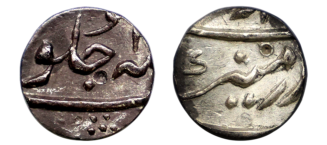 Aurangzeb (AH 1068-1118, 1658-1707 AD), Silver ¼ Rupee, 2.77 gms, extremely fine, rare.