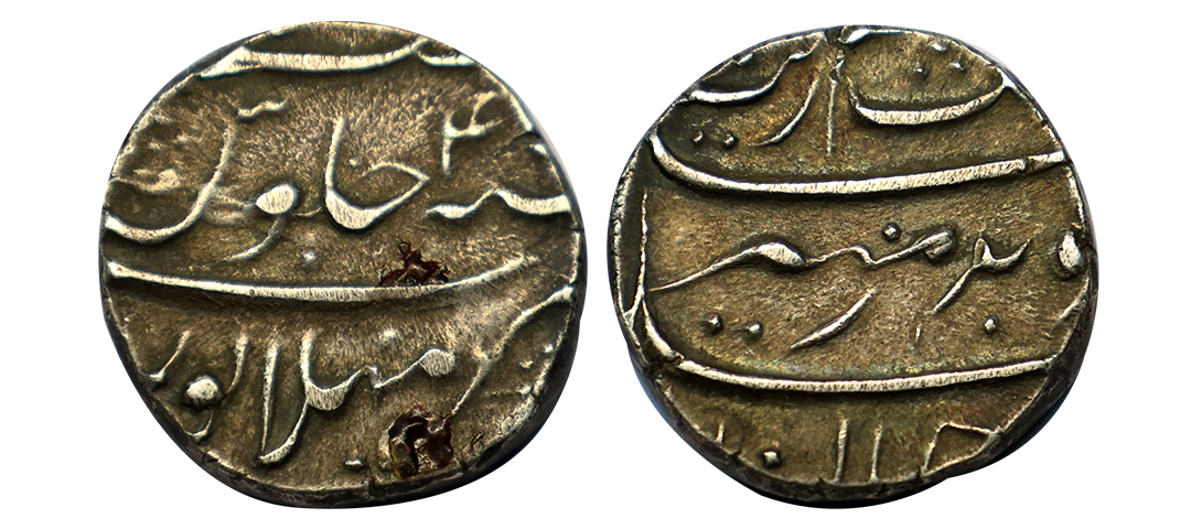 Aurangzeb (AH 1068-1118, 1658-1707 AD), Silver Rupee 11.57 gms, Khambayat Mint, AH 1105, RY 37, Badr-e-munir couplet, KM # 300.51, very fine, scarce.