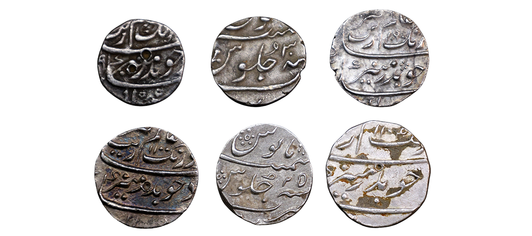 Aurangzeb (AH 1068-1118, 1658-1707 AD), Silver Rupee, 11.41 gms, Khujista Bunyad Mint, AH 1100, RY 32, Obv. Sikka dar jahan zad chu badr-e-munir Aurangzeb Badshah ghazi, Rev. manus maimanat julus zarb khujista bunyad sanah, KM # 300.52, very fine+, very scarce.