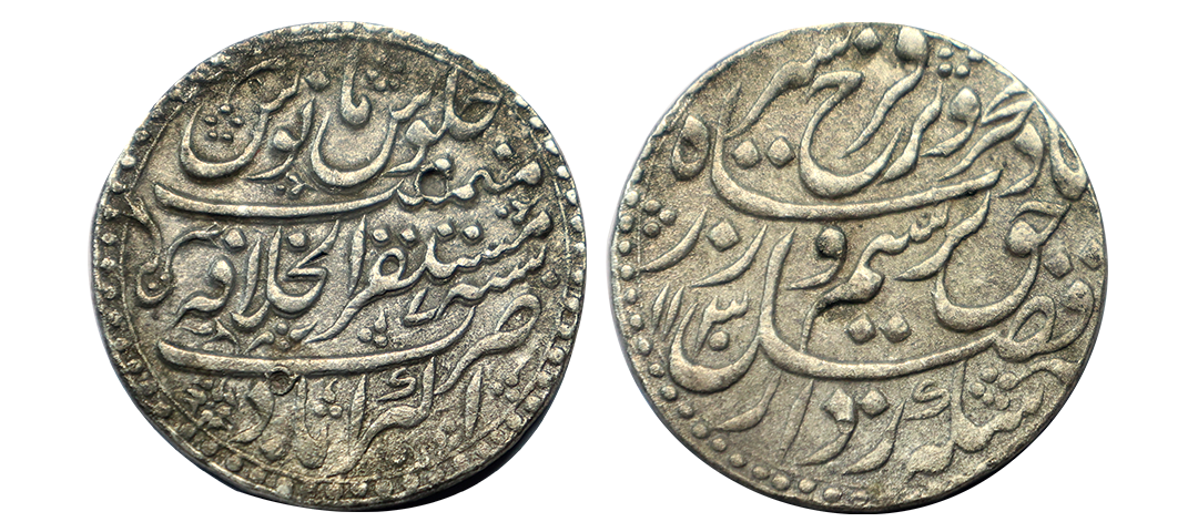 Farrukhsiyar (AH 1124-1131, 1713-1719 AD), Silver Rupee, 11.36 gms, Mustaqir al-Khilafat Akbarabad Mint, AH 1130, RY 7, Obv. sikka zad az fazl-e-haq bar sim-o-zar, badshahe bahr-o-barr Farukhsiyar, Rev. zarb Akbarabad Mustaqir ul Khilafa sana 7 maimanat julus manus, KM # 377.6, Completely Struck, very fine+, very rare. \
