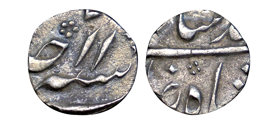 Muhammad Shah (AH 1131–1161, 1719–1748 AD), Silver Rupee, 11.48 gms, Gwalior Mint, AH 1133, RY 3, Obv. Sikka mubarak Badshah ghazi Muhammad shah, Rev. maimanat manus sana julus zarb Gwalior, KM # 436.25, extra fine, scarce.