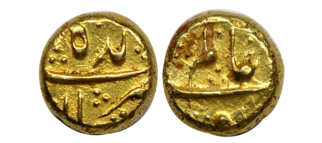 Alamgir II (AH 1167-1173; 1754-1759 AD), Gold Pagoda, 3.36grms, Imtiyazgarh Mint, complete mint name on rev in two lines. (KM 468.1). extremely fine