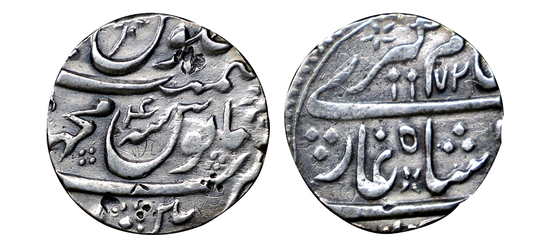 Alamgir II (AH 1167-1173; 1754-1759 AD), Silver Rupee, 11.18g, Machhlipatan Mint, AH 1172/RY 4 (KM 460.41). About Extremely Fine, Rare.