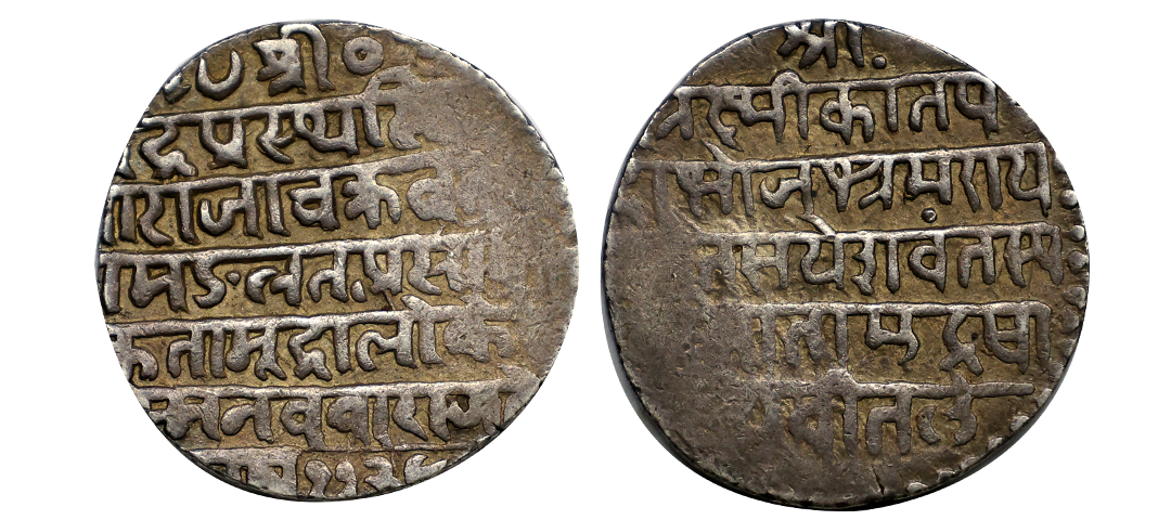 Gond Kingdom of Devgarh, Kok Shah, Son of Jataba I (1620-1640 AD), Set of 3 Copper Coins, 12.51 gms, 8.86 gms, 4.78 gms, Obv: Straight-bladed Khanda sword pointing right and Nagari legend Shri Maharaja Jatbaji Suta Devgarh, Rev: Nagari legend Shri Maharaja Kokasahi Mahipati, KM # Page no.166-167, about very fine, rare as a set.