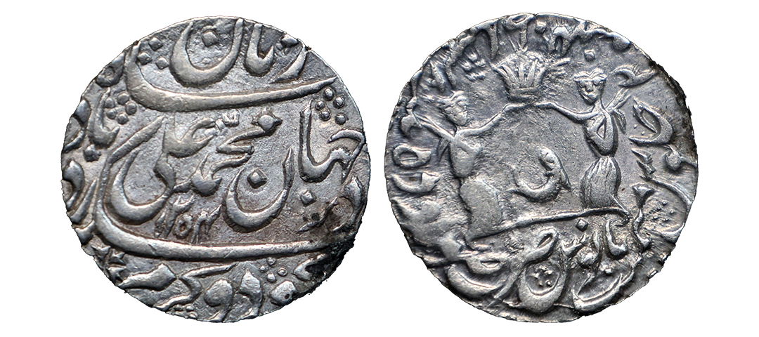 Awadh State, Nasir-ud-Din Haider (AH 1243-1253, 1827-1837 AD), Silver Rupee, 11.08 gms, Dar as-Sultanat Lakhnau Suba Awadh Mint, Mint Epithet: Variety II, AH 1244, RY 2, issued by Nasir-ud-Din Haider in his other name as Sulayman Jah, Sulayman Jah legend can be seen in the 1st divider & at 12 o clock on the rev, Obv: zarb suba awadh sanah julus manus maimanat dar-as-sultanat lakhnau, Rev: bad har sikka shah-i-zada ze lutf pehar martaba shah jahan ilah, sulaiman jah, KM # 186, Kapoor & Master # 8.10, very fine, very scarce.
