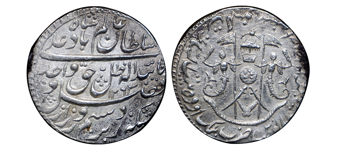 Awadh State, Wajid Ali Shah (AH 1263-1272, 1847-1856 AD), Silver Rupee, 11.16 gms, Mulk Awadh Bait-us-Sultanat Lakhnau Mint, AH 1263, RY AHD, Mint Variety IV, KM #365.1, extremely fine, scarce