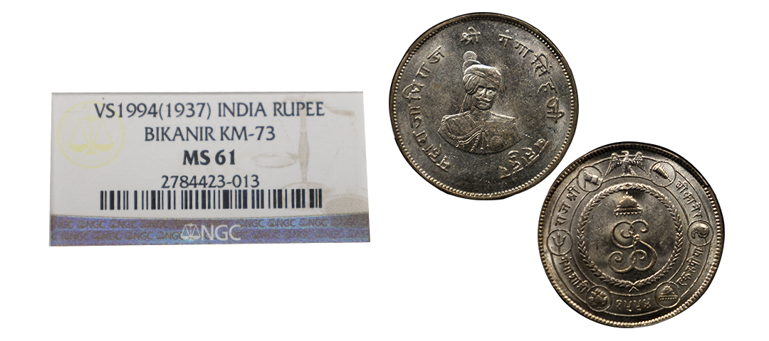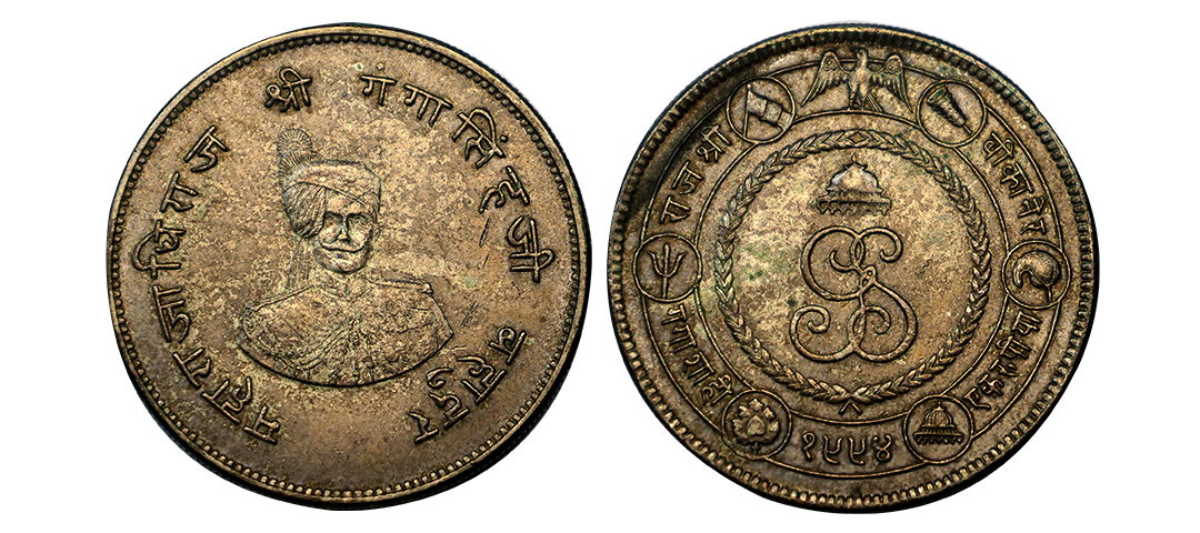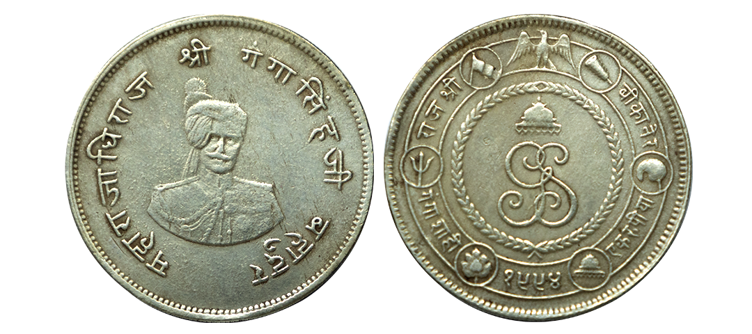 Bikanir, Ganga Singh (VS 1944-1999 / 1887-1942 AD), Silver Rupee, 11.64Grms, AD 1892, Calcutta Mint, Portrait of Victoria Empress on obv., milled coinage. (KM # 72). About Uncirculated, Lusture, Toned.