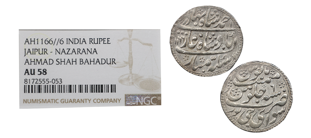 Gwalior State, Jayaji Rao (AH 1259-1304, 1843-1886 AD), Brokage Error, Silver Rupee, 10.63 gms, Laskhar Mint, Inverted Bow & arrow with ‘Ji’ initials, KM # 152, very fine, very rare.