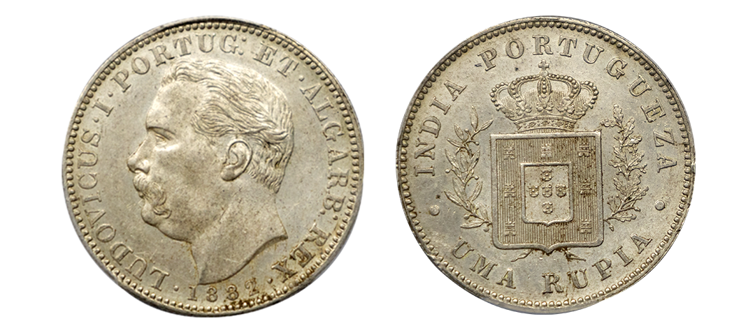 Portuguese India, Goa, Luis I (Ludwig), Silver Rupia, 1882 AD, KM # 312, graded as MS 62 by PCGS, rare.