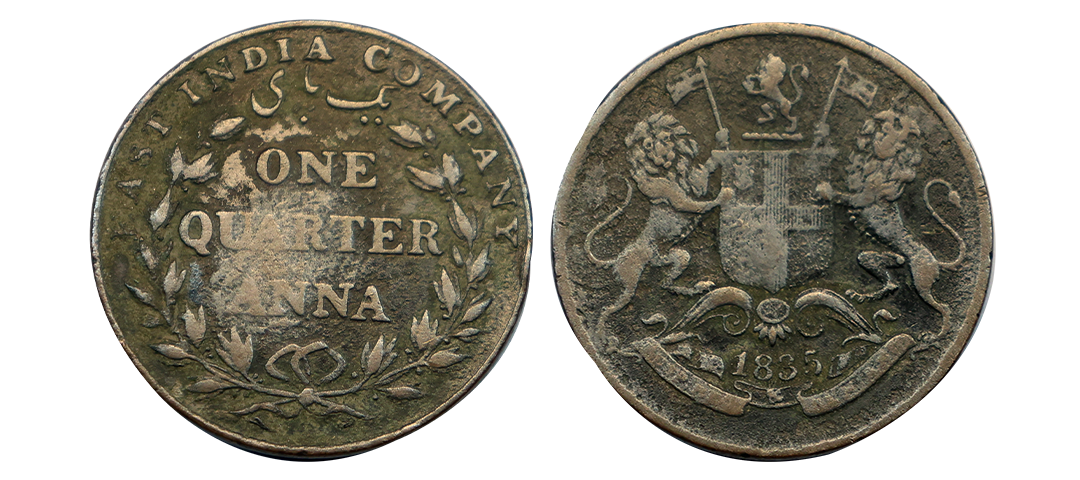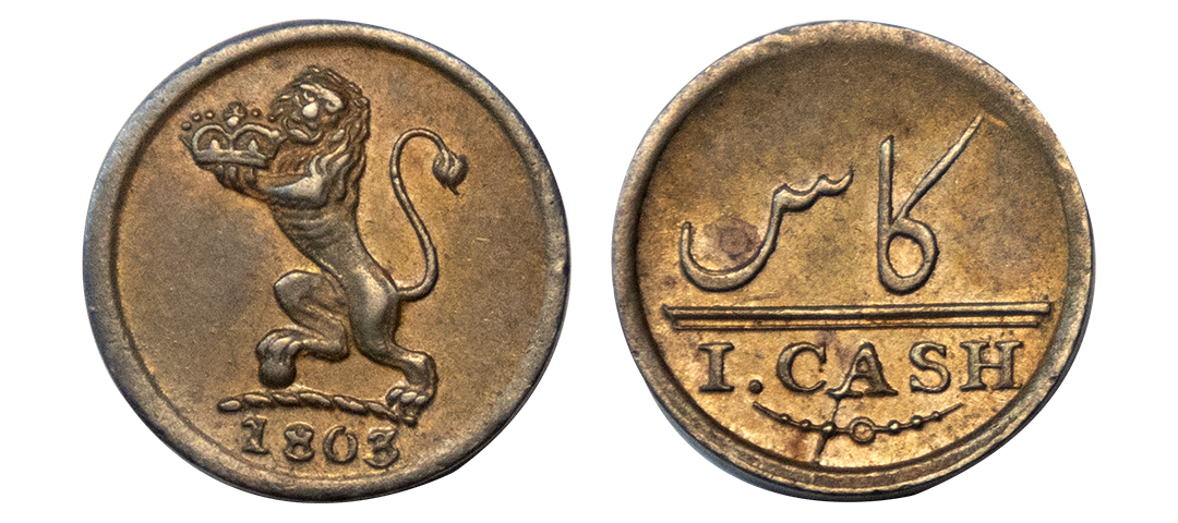 Madras Presidency, Silver 2 Fanams, 1.79 gms, 2nd Issue, 1808 AD, Obv: the value in Persian encircled by a short oval buckled garter, the value in English legend "DOUBLE FANAM" on the garter, all within a beaded border, Rev: the value in Telugu in two lines within by a ribbon containing the value in Tamil, whose ends are separated by a star, all within a beaded border, KM # 350 /Stevens # 3.250 /PR # 185, very fine, very scarce.