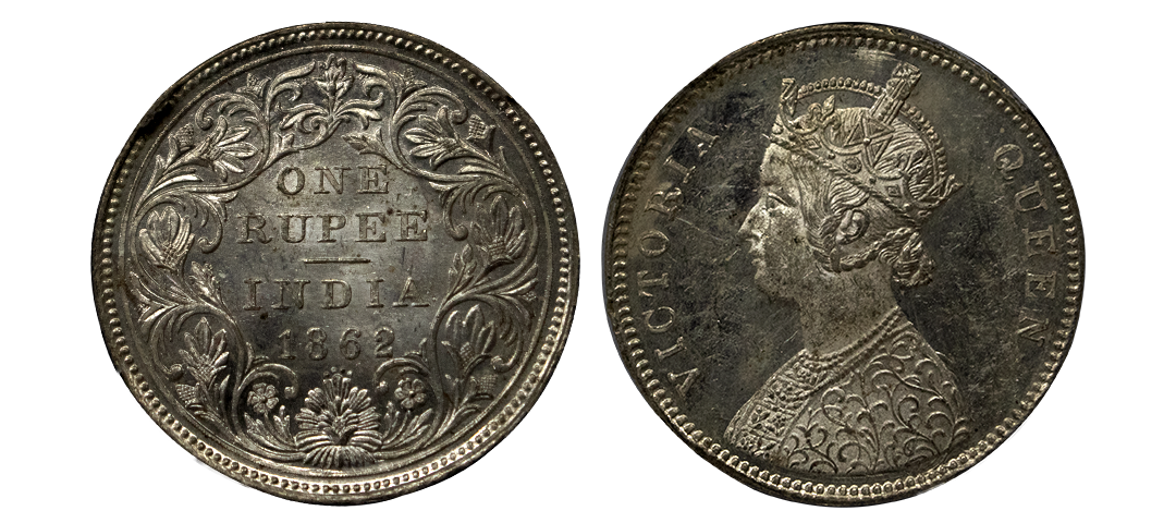 Victoria Queen, silver rupee, 1862, Bombay mint, A/II/0/4, without initial J, PR 79; GK 308.