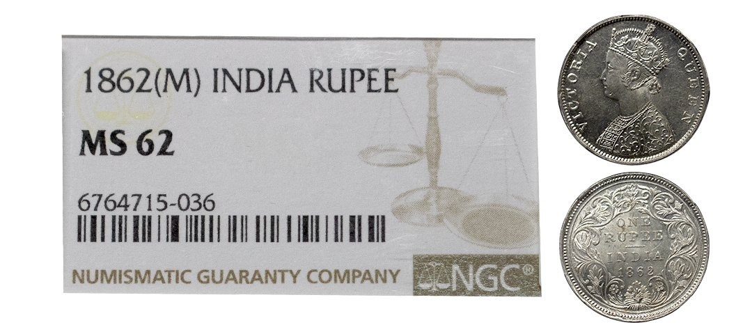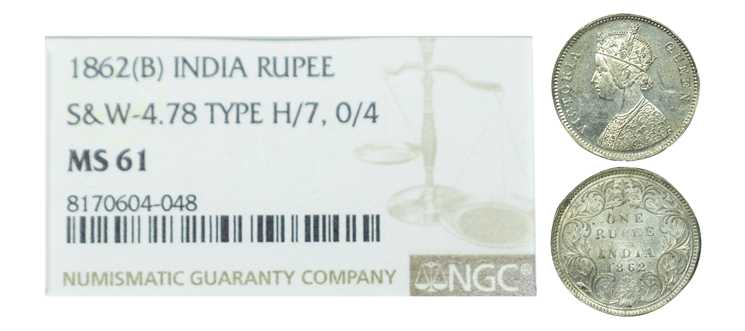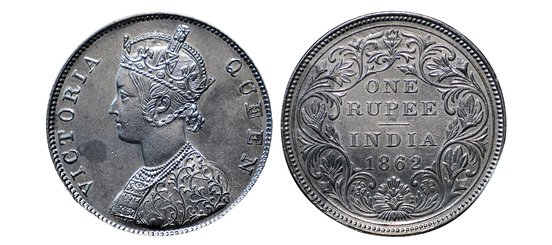 Victoria Queen, Silver Rupee, 1862, Calcutta Mint, B/II, 4, Pineapple buds variety, Extremely Fine+, Rare.