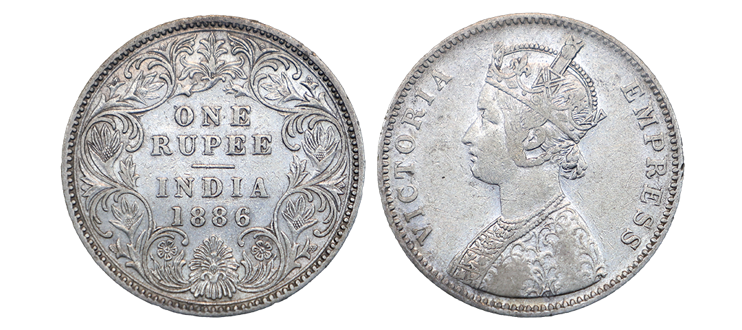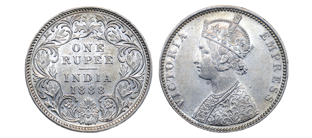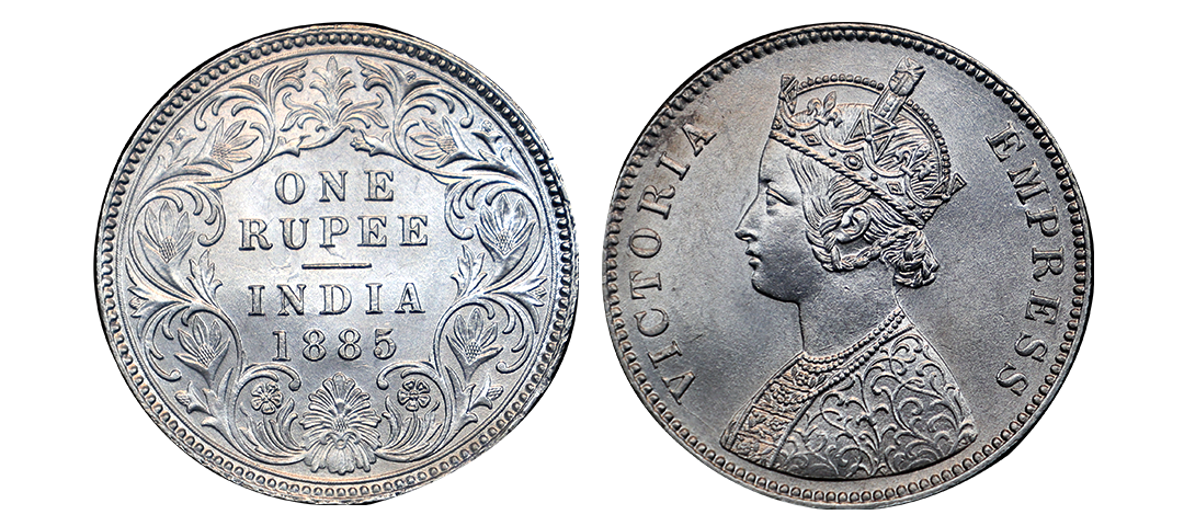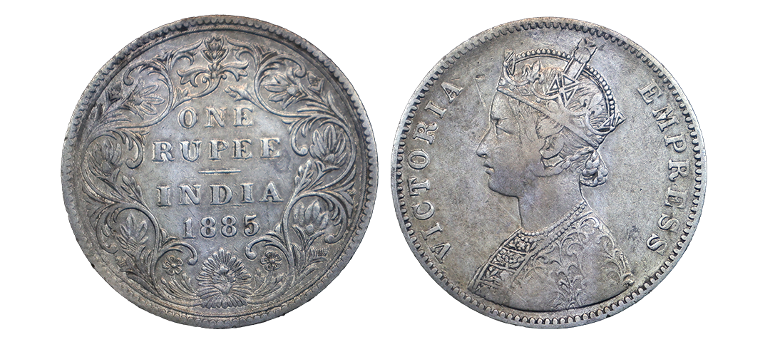 Victoria Empress, silver rupee, 1885, Bombay mint, A3/Iii/B raised bottom flower, Very Fine+.