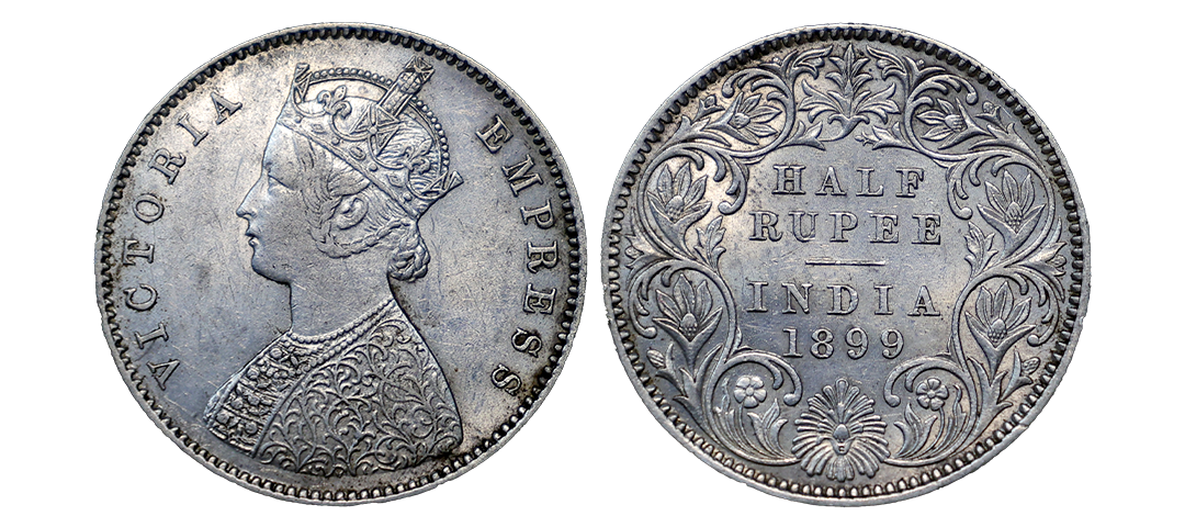 Victoria Empress, Silver ½ Rupee, 1899, Calcutta Mint, A / I / C incuse (Prid 282). Uncirculated.