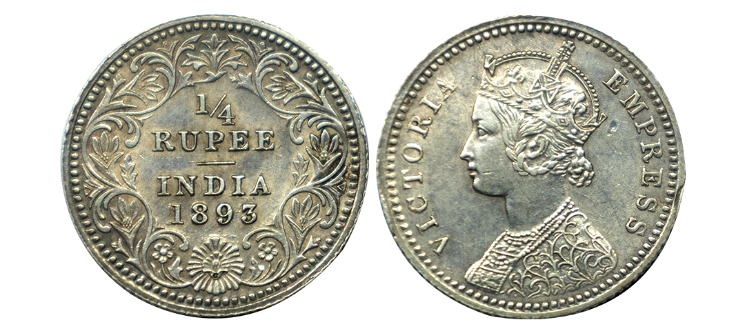 Victoria Empress, Silver ¼ Rupee, 1881, Bombay Mint, C / II / dot, Unlisted in Pridmore, (SW 6.263). Fine+, Rare.