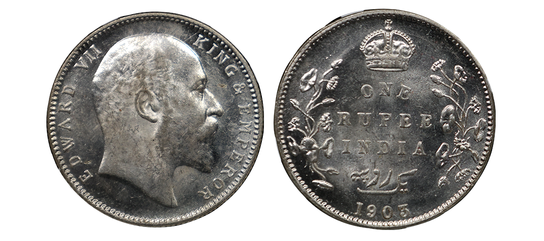 Edward VII, Silver Rupee, 1903, Bombay Mint, Incuse Mintmark . NGC graded MS63, Extremely Rare in Grade, Underlying Lusture.