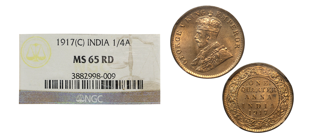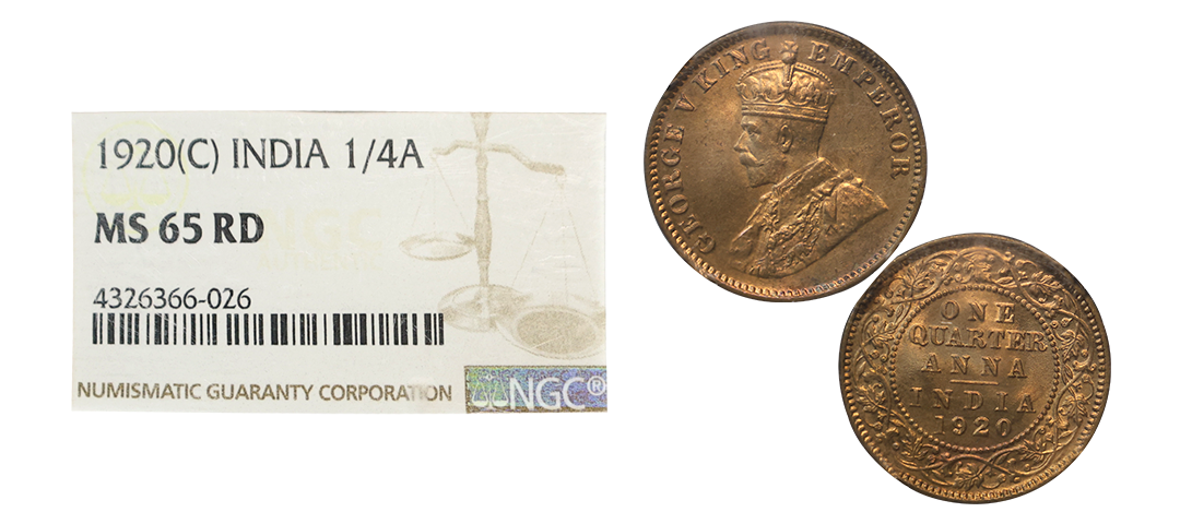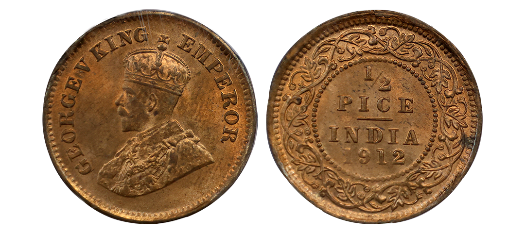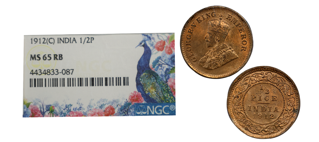 George V, Copper ½ Pice, 1919, Calcutta Mint (Prid 752). Graded by NGC MS65RB.