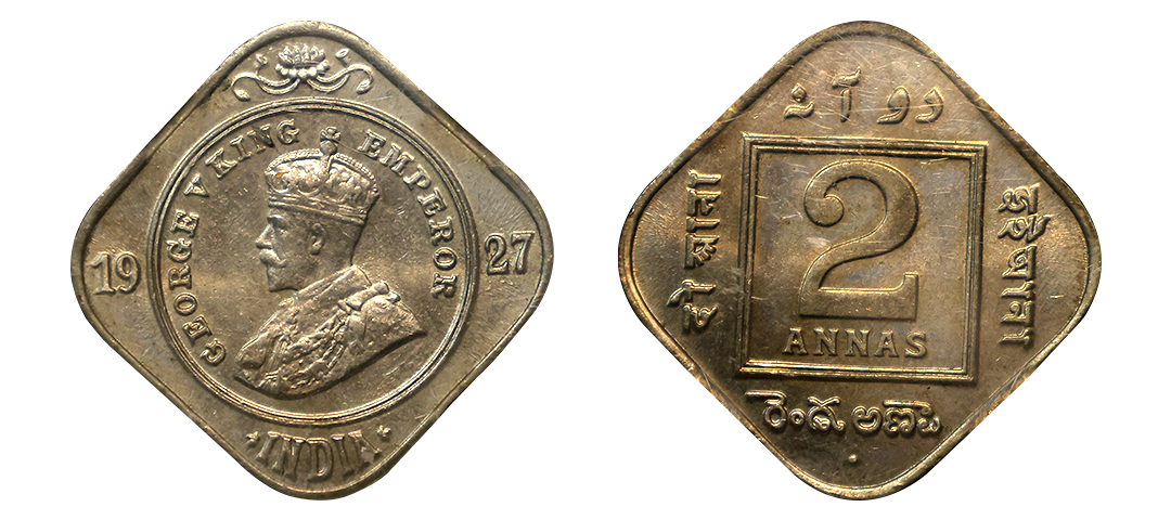 George V, Cupro-Nickel 2 Annas, 1927, Bombay Mint (Prid 900). Graded by NGC MS64.
