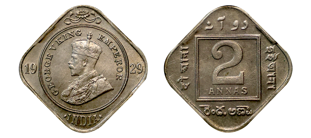 George V, Cupro-Nickel 2 Annas, 1929, Calcutta Mint (Prid 899). Graded by NGC MS61
