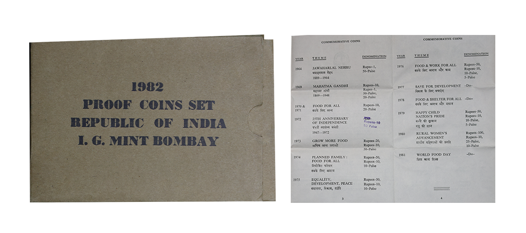 1982 Proof Set, IX Asian Games Delhi, set of 2, Rupees 10 and 100. In near immaculate condition, within original packaging, Very Rare. (2); ( from the collection of Mr. I. K. Kejriwal ).