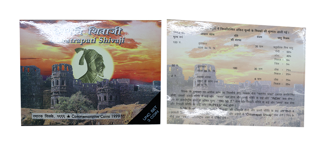 1999 Uncirculated Set, Chhatrapati Shivaji, set of 3, Rupees 2 to 100. In immaculate condition, within original packaging, Rare. (3); ( from the collection of Mr. I. K. Kejriwal ).