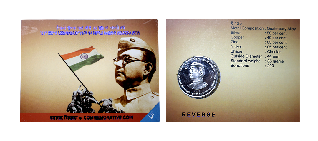 2021, Uncirculated Set, 125th Birth Anniversary of Netaji Subhas Chandra Bose, Kolkata Mint, in original mint packaging.