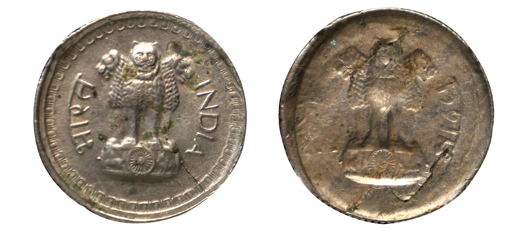 Republic India, 25 paisa, cupro-nickel, ND, brockage (Lakhi) showing retrograde impression of the obverse on reverse. Graded by NGC Mint Error AU 53, Rare.