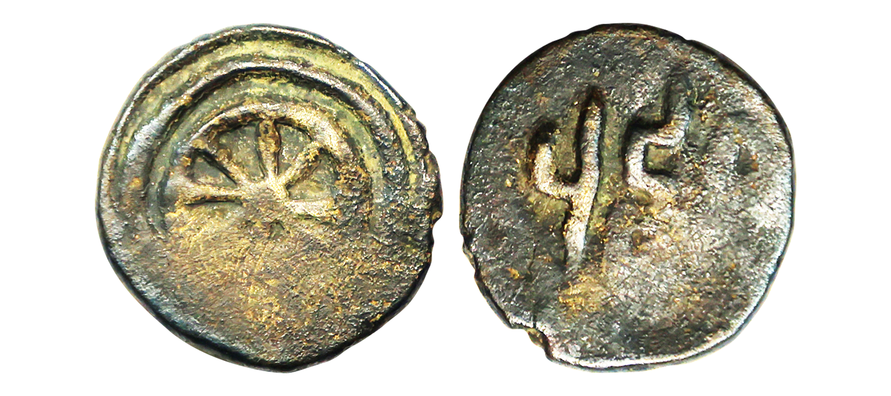 City State of Vidisha (2nd-1st Century BC), Copper Fractional Unit, 1.08 gms, Obv. Wheel, Rev. Brahmi legend ‘VeDiSa’, Pieper # 849, fine to very fine, very scarce.
