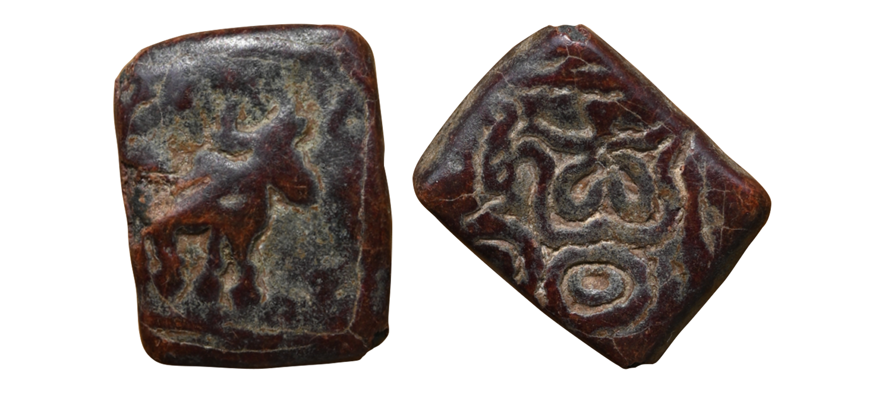 Vidarbha region, Sebaka Series, (2nd Century BC), Lead Unit, 3.56 gms, Obv. A bull to right, taurine above, Rev. dynastic sebaka emblem/ bold nandipada, Pieper #2475, very fine, extremely rare.