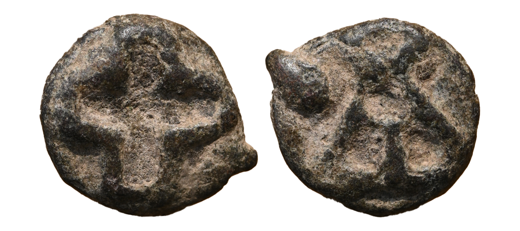 Vidarbha, Pauni Region, (1st Century BC) Universal Cast Copper Unit, 1.41 gms, Obv. Three arched hill & railed tree, uniface, Mitchiner #4592, very fine, very scarce