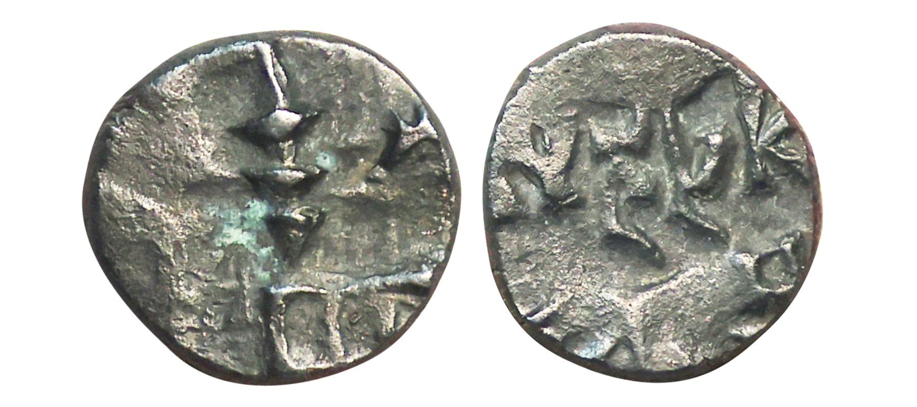 Panchala Dynasty, Suryamitra, Heavy Copper Alloyed Unit, 12.42Grms, OBV: Two royal symbol of Panchala horizontally and below Brahmi legend ‘Suyamitasa’, REV: Tree-in-railing. (Pieper # 1347). Fine.