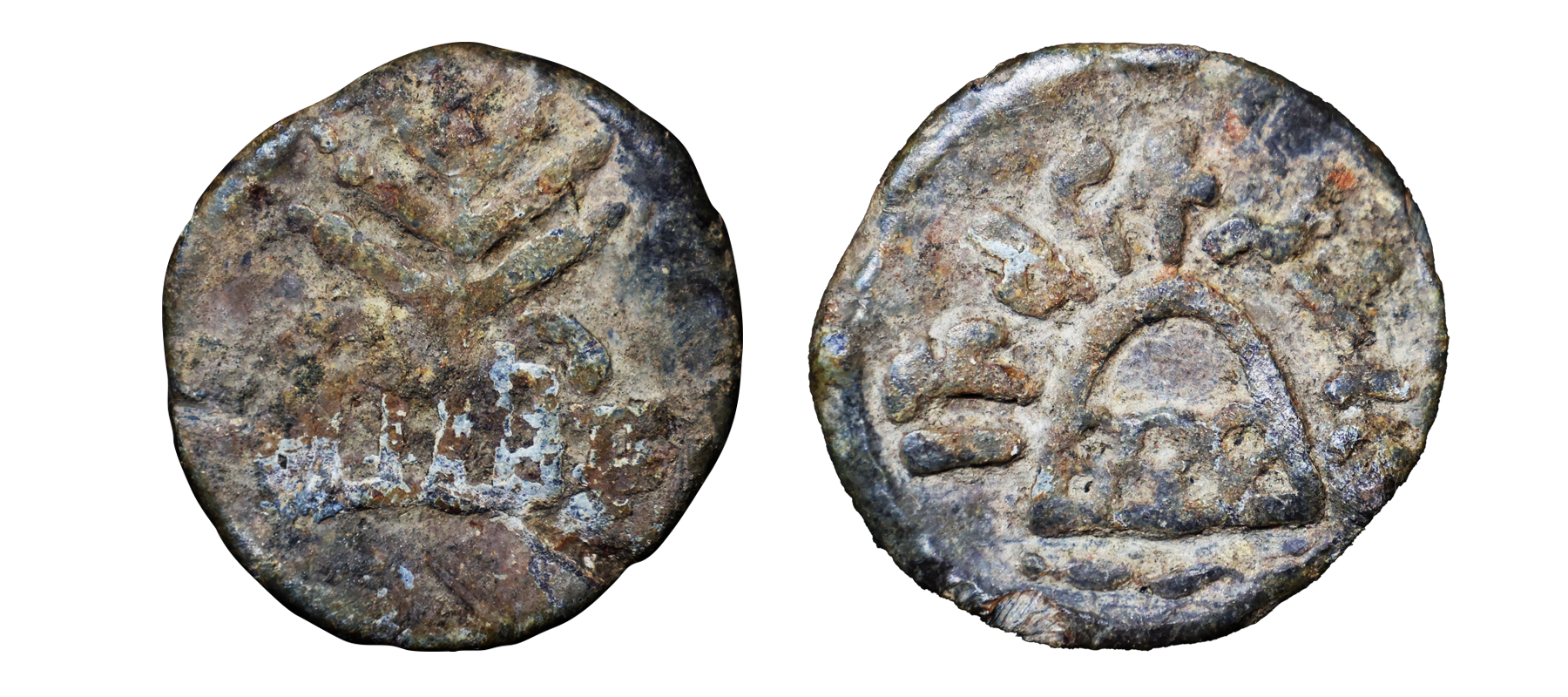 Panchalas of Ahichhatra, Jayamitra, Copper Alloy, 4.15g, OBV: Royal symbol of Panchala on top and below Brahmi legend 'Jayamitasa' in a deep square incuse, REV: Male god standing on platform holding objects. (Pieper # 1337). Very Fine+.