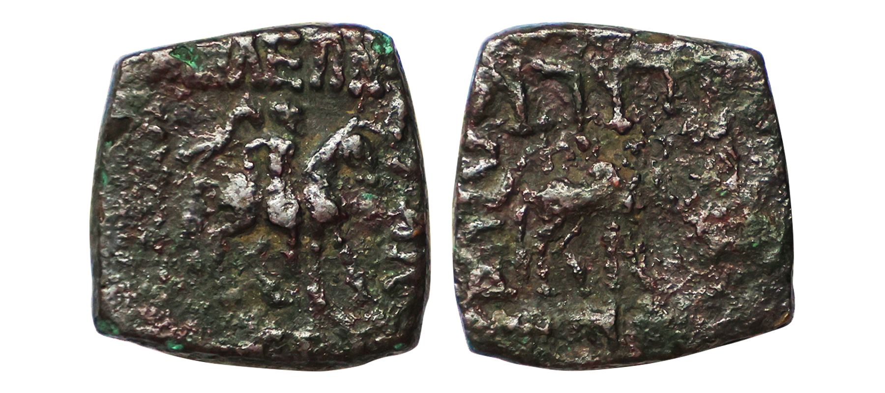 Indo Scythians, Azilises (5-45/35 BC). Copper ¼ Unit, 2.96 gms, Obv. Horseman to right Greek legend around, Rev. bull to right Kharosthi legend around, similar to Senior #51, fine, rare.