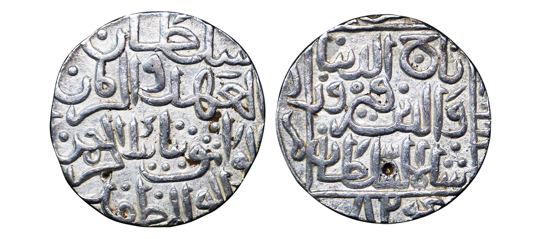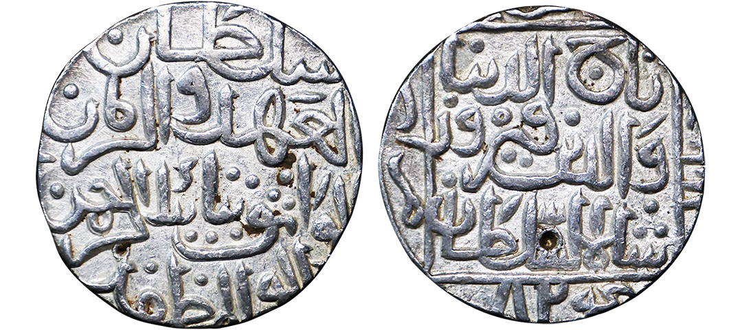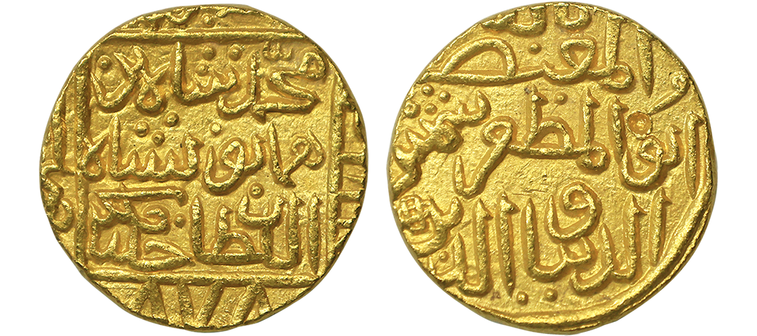 Madura Sultanate, Jalal al-din Ahsan Shah (AH 734-740; 1333-1339 AD), Gold Tanka, 11.02g, Hadrat Madhura Mint, AH 735, abul za'afa'a wa'l masakin Ahsan Shah al-sultan khuldat khilafatahu legend on obv. Uncirculated. All gold coins of Madura Sultan are extremely rare. Coins of Ahsan Shah are not listed in Goenka and Goron nor in Rajgor’s catalogues.