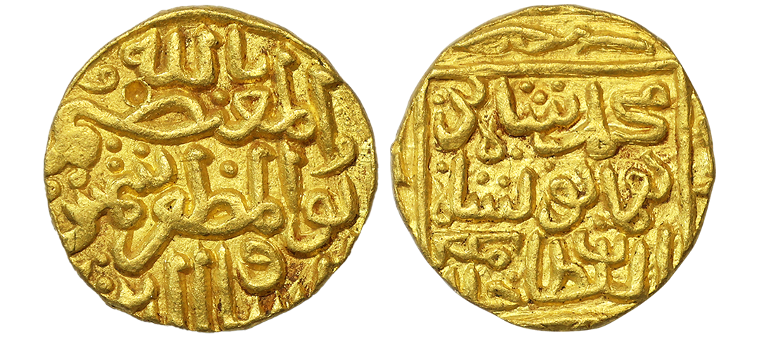 Bahamani Sultanate, Muhammad Shah III bin Humayun Shah (AH 867-887 / 1463-1482 AD), Gold Tanka, 11.07g, Muhammadabad Mint, AH 878, Al-mu ‘tasim billah shams al duniya wa ‘l din legend on obv. (G&G # BH110). Extremely Fine.