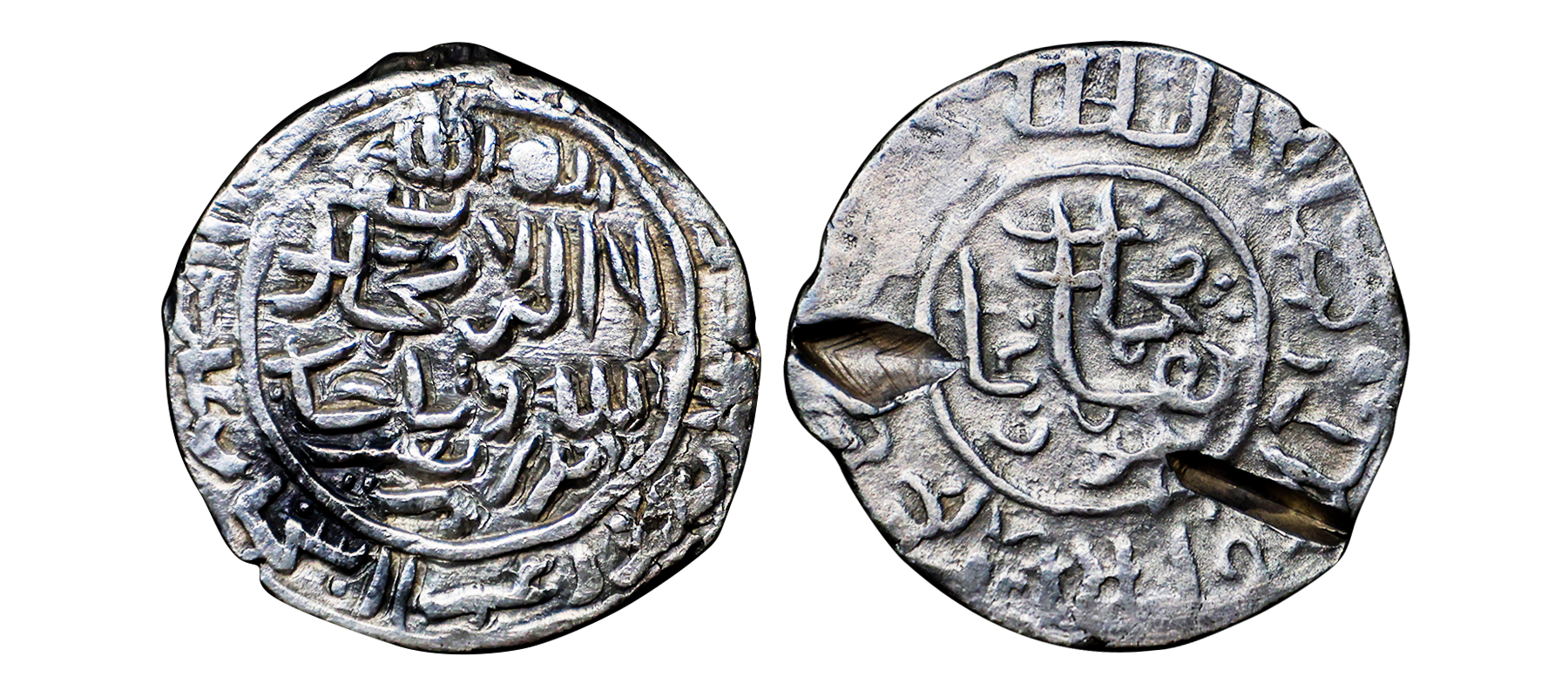 Humayun, First Reign (AH 937-947, 1530-1540 AD), Silver Shahrukhi, 4.64 gms, Agra Mint, AH 946, Obv. Kalima Shahada with Allah yarzuq man yasha'u ba ghair hisab, Rev. Muhammad Humayun Ghazi, within an octofoil, ‘al sultan ul azam al khaqan al mukarram, khuld Allahu ta'ala dhatahu wa mulkahu wa sultanahu zarb Agra’ Hull #1173, holed, very fine, very rare date.
