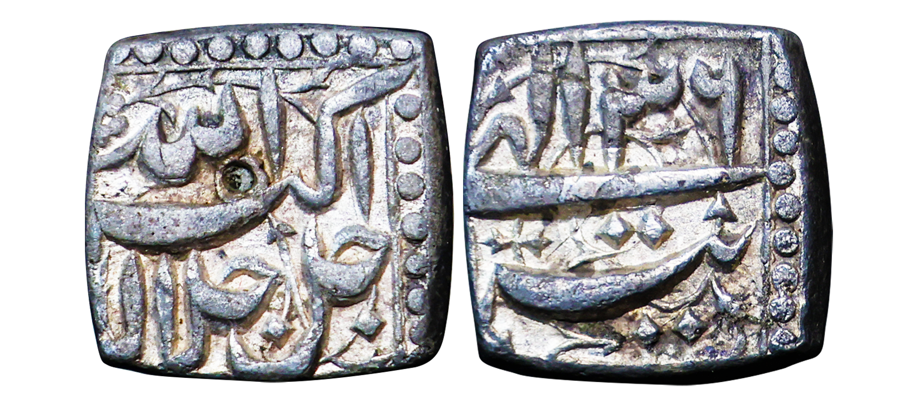 Humayun (In exile, 1540-1555 AD), Qandahar Mint, Silver Shahrukhi (Misqal/Mithqal), Jointly issued with the name of Tahmasp I Safavid of Iran, Obv: Arabic legend Shi'it version of the Kalima (La Ilaha Illallah) Muhammad Rasulullah Ali Wali Allah, with the name & titles of Tahmasp "al-sultan-ul-azam wa'l Khaqan (al-mukarram Shah Tahmasap Al-Husaini)" partly visible, Rev: Arabic legend Shi'it version of Kalima Shahada (La Ilaha Illallah) Muhammad Rasulullah 'Ali Wali Allah, with the full name of "(Muhammad Humayun Ghazi bin) Zahir-ud-din Muhammad (Babur) Badshah Ghazi, Zarb Qandahar" partly visible, 4.80g, (Ref. JONS # no 114), some usual area of flatness, about very fine, Exceedingly Rare. Similar Coin Sold in Marudhar Arts Auction No. 45 for 5.60,000. Below Note by Marudhar arts. Note: Humayun, after being Defeated by Sher Shah Suri, sought refuge at the Persian Shah's court in 950 AH (1543 AD). During his two-year exile, he sought Shah Tahmasp's support to reclaim his throne in India. In exchange for assistance, Humayun agreed to convert to the Shia sect of Islam and promised to cede Qandahar upon its conquest. Upon the successful capture of Qandahar, tensions arose with the Persian garrison, leading Humayun to personally lead the expulsion of the Persians. Despite potential friction with Shah Tahmasp, Humayun appointed Behram Khan, a Shia general and future mentor to Akbar, as Governor of Qandahar. Diplomatic ambassadors were dispatched to reassure Shah Tahmasp of Behram Khan's loyalty, after dismissing the Shah's envoy, Bidagh Khan, for disobedience. To strengthen the alliance, Humayun minted coins in Shah Tahmasp's name with Shia inscriptions. These coins, likely minted shortly after Qandahar's recapture in 1545 AD, were timed to coincide with the arrival of Humayun's envoys and letters to the Shah's court, anticipating the Shah's positive response. The issuance of these coins served as a strategic diplomatic move by Humayun to secure Persian support in his quest to reclaim his Indian territories.