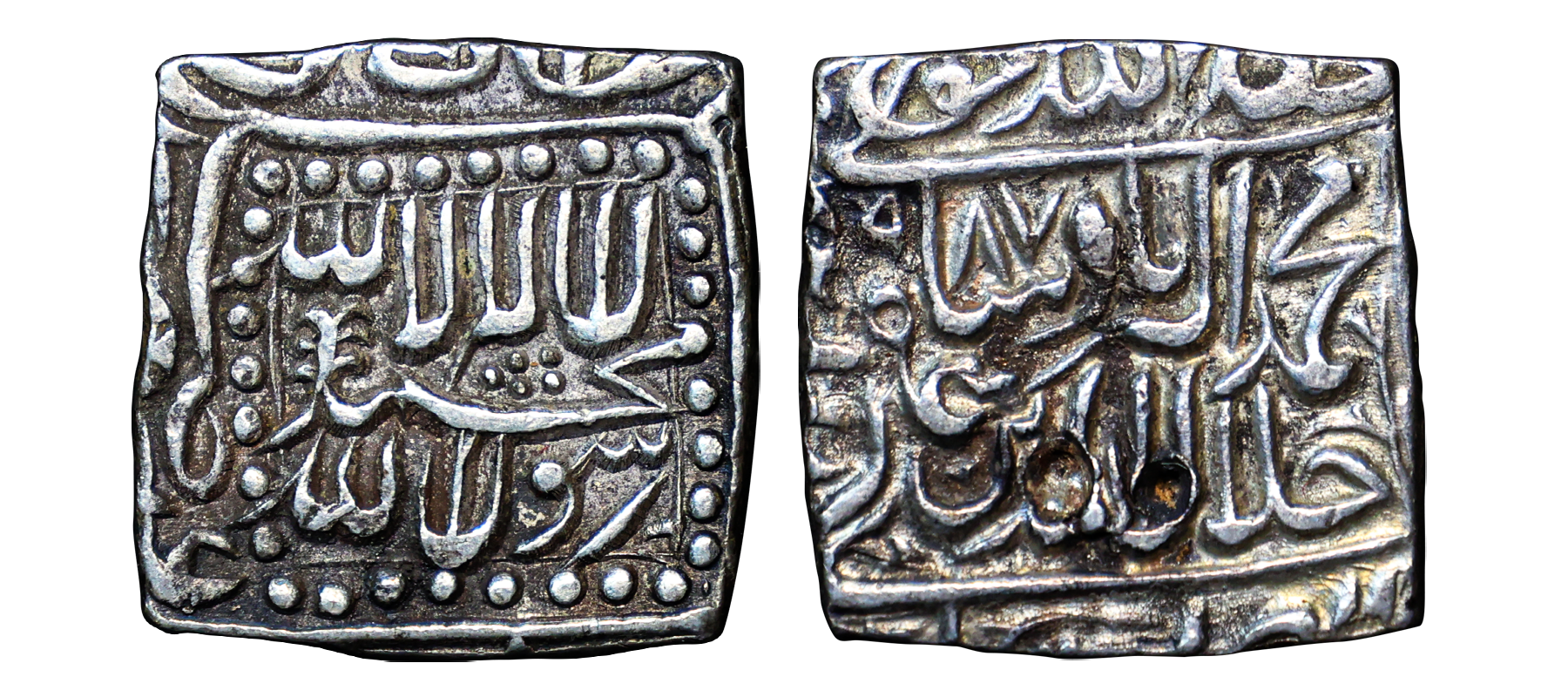 Akbar, Silver Rupee, 11.31g, Allahabad Mint, rebellion issue of Jahangir, complete mint name at top (KM 97.1). Extremely Fine.