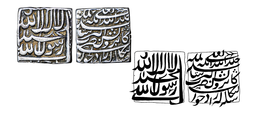 Akbar (1556-1605 AD), Silver Square Rupee, AH987 Bang Mint, KM A86.1; 11.29gms, About Extremely Fine+, Rare. Dotted Border on one side complete, Date and mint on the other side, the dotted border variety is rare in Bang mint coins.