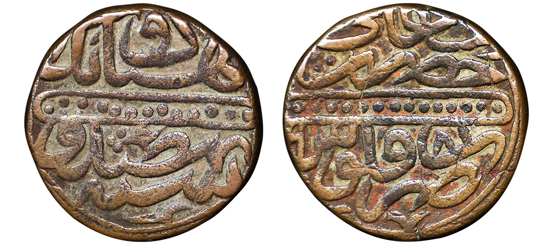 Akbar (AH 963-1014 /1556-1605 AD), Silver Rupee, 11.28 gms, Bang Mint (Off flan), AH 1001 (Alf Ahad), Obv. Kalima Shahada, Rev. Jalal ud din Muhammad Akbar Badshah Ghazi Alf Ahad, Unlisted in KM, extremely fine, rare.