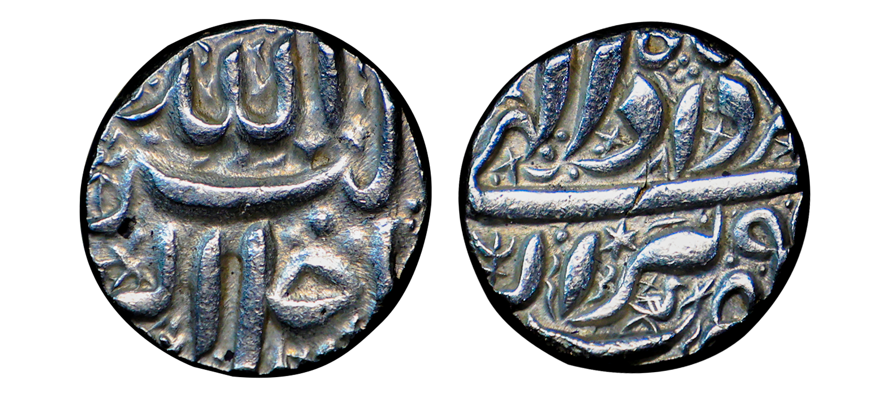 Akbar (AH 963-1014 /1556-1605 AD), Silver Rupee, 11.28 gms, Bang Mint (Off flan), AH 1001 (Alf Ahad), Obv. Kalima Shahada, Rev. Jalal ud din Muhammad Akbar Badshah Ghazi Alf Ahad, Unlisted in KM, extremely fine, rare.