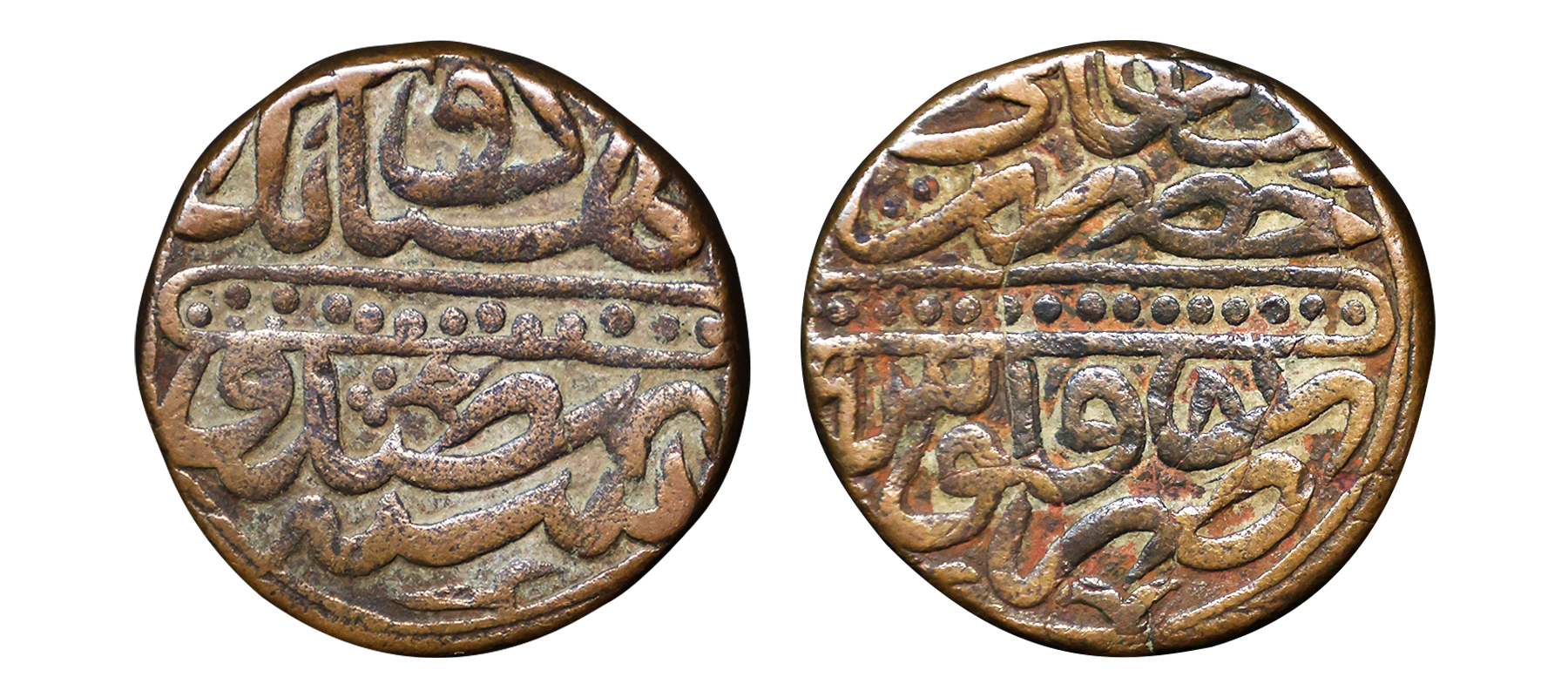 Akbar (AH 963-1014 /1556-1605 AD), Silver Rupee, 11.28 gms, Bang Mint (Off flan), AH 1001 (Alf Ahad), Obv. Kalima Shahada, Rev. Jalal ud din Muhammad Akbar Badshah Ghazi Alf Ahad, Unlisted in KM, extremely fine, rare.