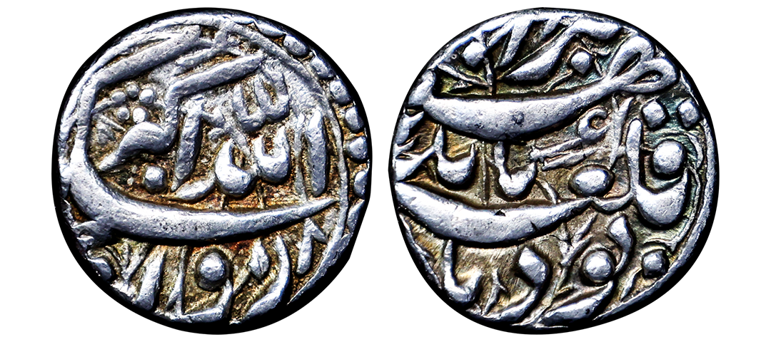 Akbar (1556-1605 AD), silver rupee, Qila Bandu mint, KM 96.1, 11.39g. Obv: Legend Riwaz i-Sikka Allahu Akbar. Rev: Legend Buwad ba Qila Bandhu Barabar. No Test Marks, Bold Strike, High Relief, Uncleaned, Beautiful Specimen, Extremely fine+, Extremely rare. The fort of Bandhavgarh which was traditionally ruled by the Baghela rulers was attacked by Akbar's forces in 1597 when a young Vikramaditya Deo Baghela ascended the throne. Vikramditya was forced to vacate the fort and thus Akbar made Rewa the capital. Similar coin Hammered in our Auction #6 for 87000.