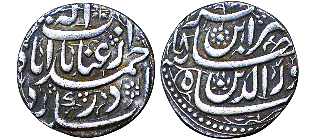Jahangir (AH 1014-1037, 1605-1627 AD), Silver Rupee, 11.39 gms, Ahmedabad Mint, Jahangir with Pre-accession name Salim, Ilahi Month Khurdad, RY 2, KM # 140.2, very fine, very scarce.