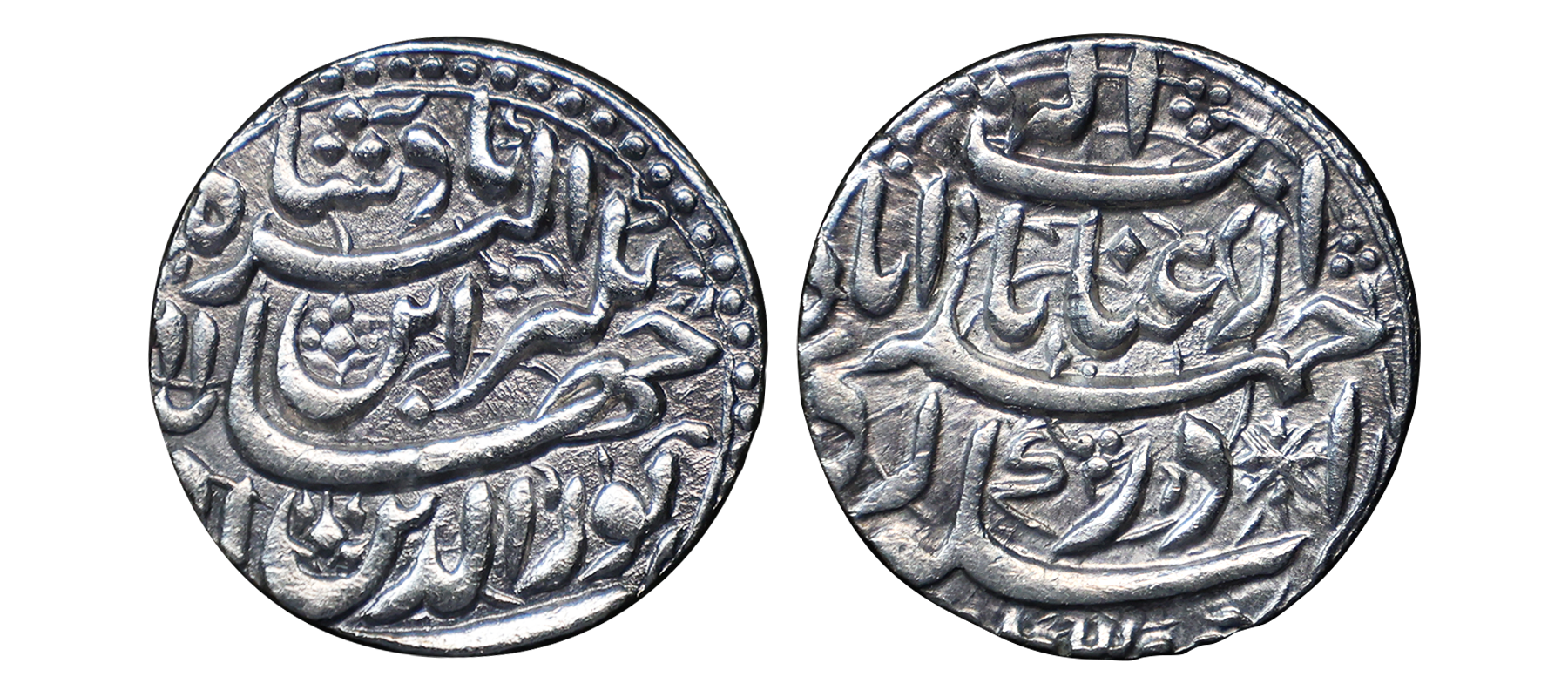 Jahangir (AH 1014-1037, 1605-1627 AD), Silver Rupee, 11.39 gms, Ahmedabad Mint, Jahangir with Pre-accession name Salim, Ilahi Month Khurdad, RY 2, KM # 140.2, very fine, very scarce.
