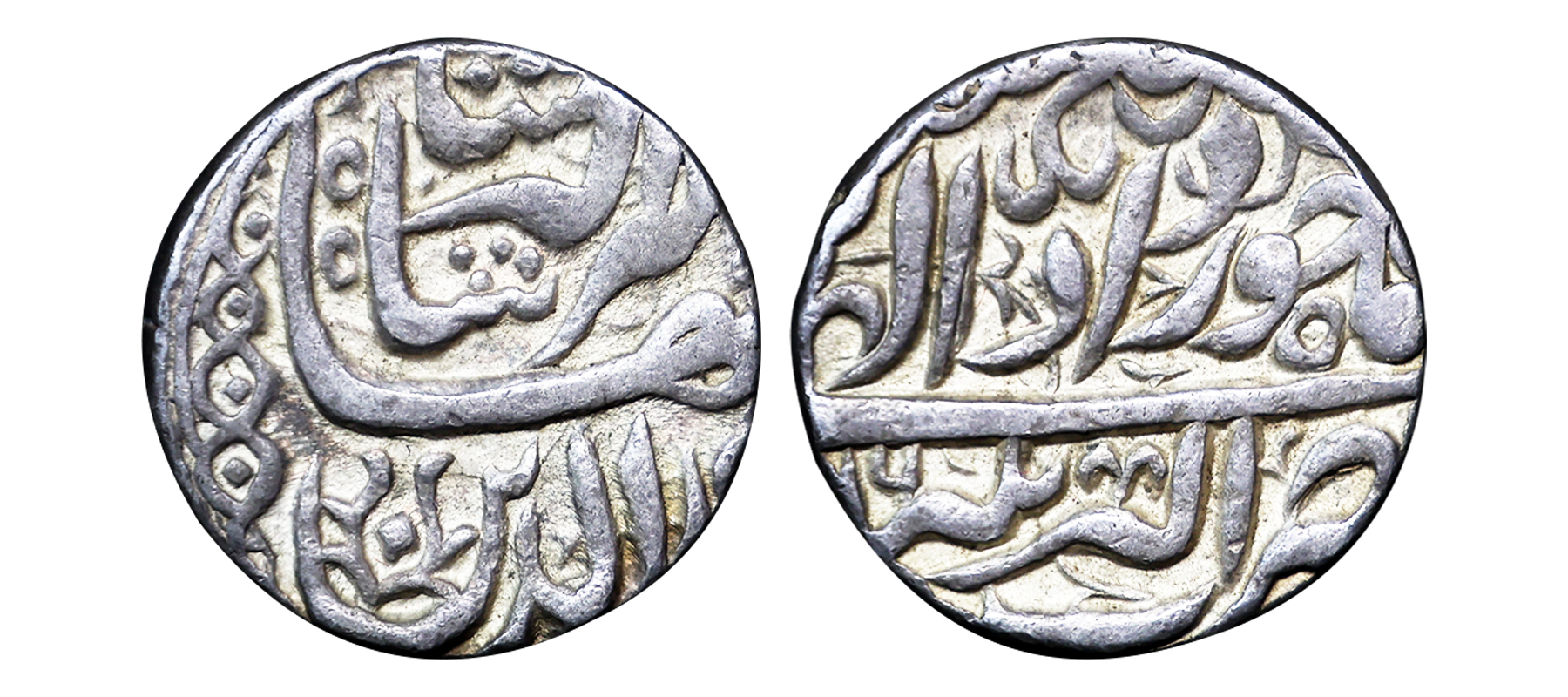 Jahangir (AH 1014-1037 / 1605-1627 AD), Silver ½ Rupee, 5.67g, Ahmednagar Mint, 1032 AH, Rarer type than usual, floral design on both sides. Here the mint-name is inscribed by making the word 'Ahmed' as a divider. Similar to 'Ahmed-a-nagar' type coins, half rupees with date are extremely rare, bold strike, beautiful floral decorations all around, Uncirculated.