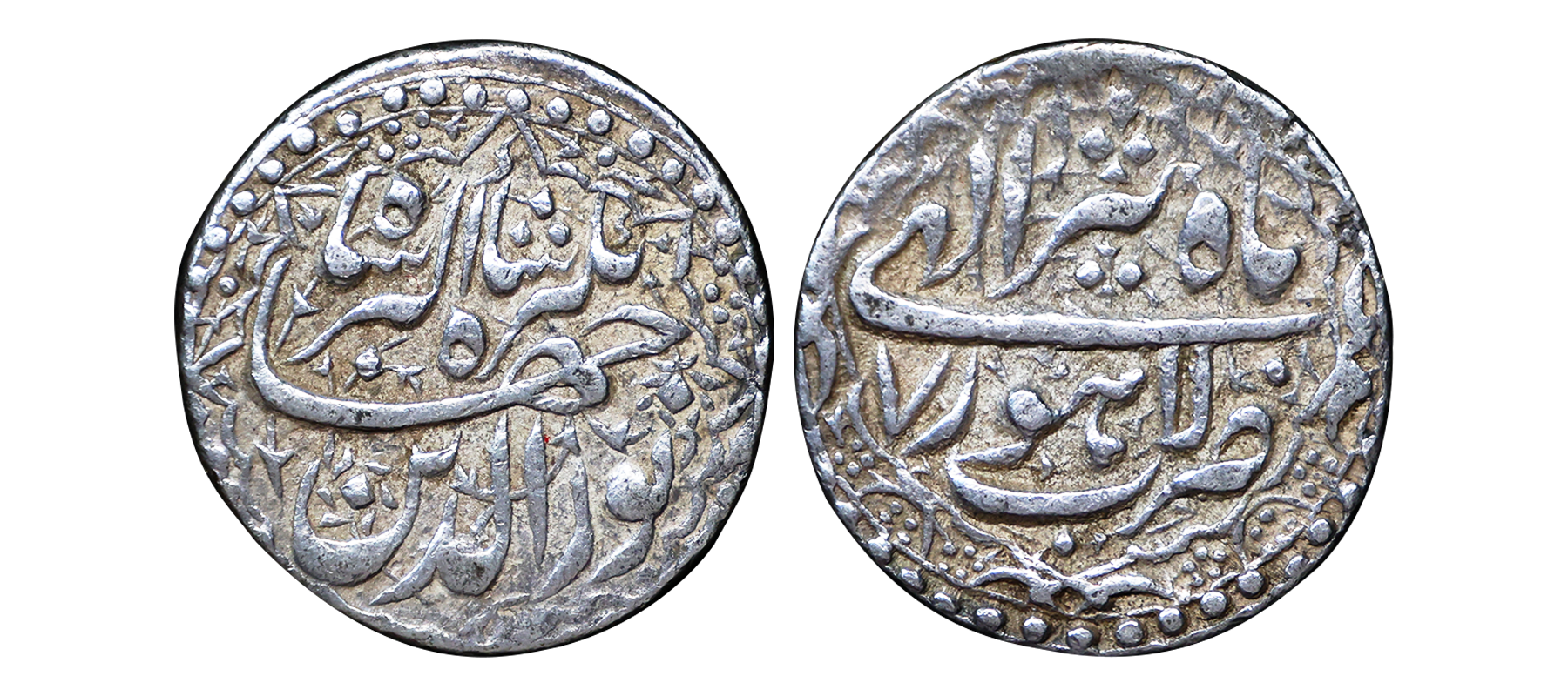 Jahangir (1605-1627 AD), silver rupee, Lahore mint, 'Nur ud-din' type, Tir 7, KM 145.11, 11.370g. About extremely fine, Dotted Borders Visible on Both Sides, Rare.
