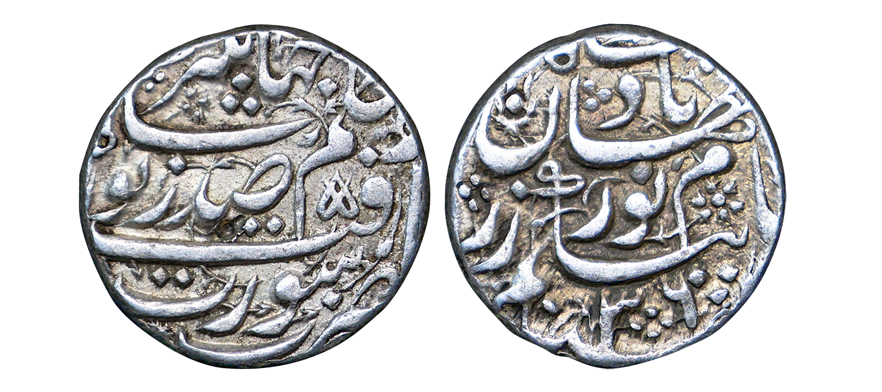 Nur Jahan (AH 1033-1037, AD 1623-1627), Silver ½ Rupee, 5.45 gms, Surat Mint, AH 1033, Obv. ze hukum jahangir yaft sad zewar, zarb surat below, Rev. banam nurjahan badshah begum zar, date below, KM # 167.2, about very fine, very rare.
