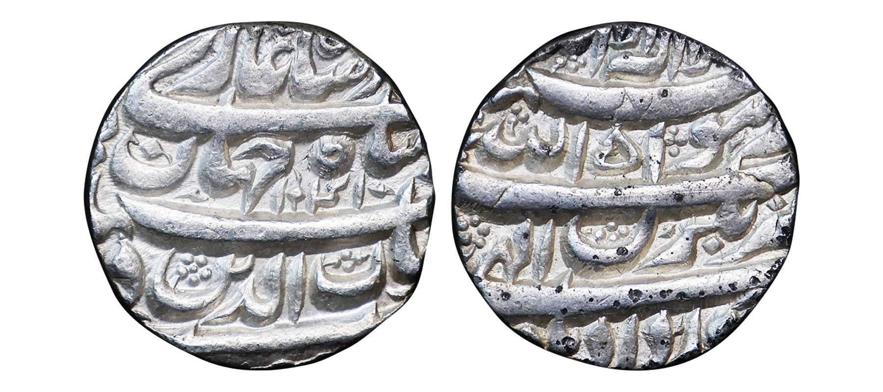 Shah Jahan (AH 1037-1068, 1628-1658 AD), Silver Rupee, 11.42 gms, Akbarabad Mint, AH 1045, RY 8, Obv. Kalima with 4 calips in quadrants, Rev. Rulers name withing dotted square and titles in quadrants along with mint name, KM # 235.3, very fine+, struck on broad flan, very scarce.